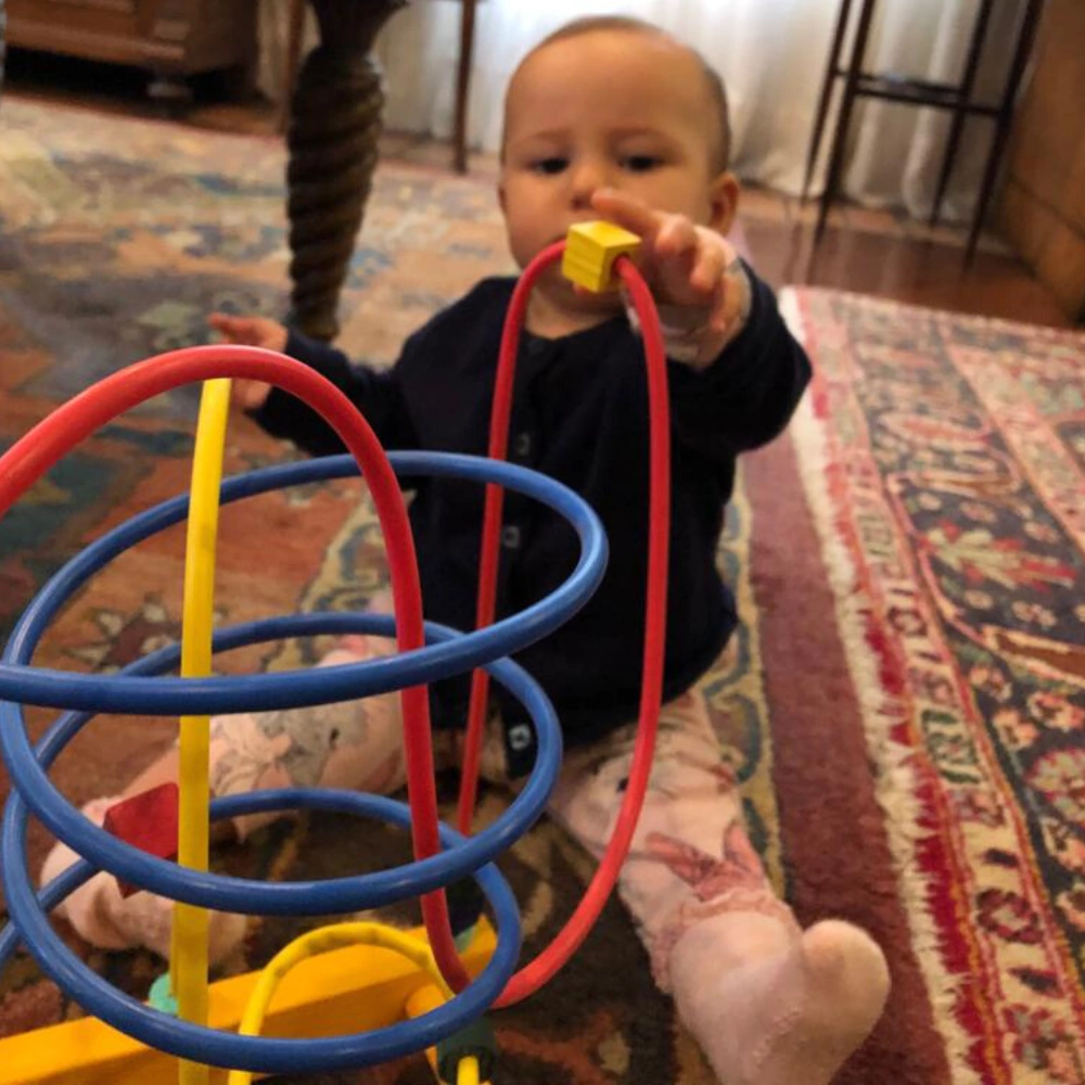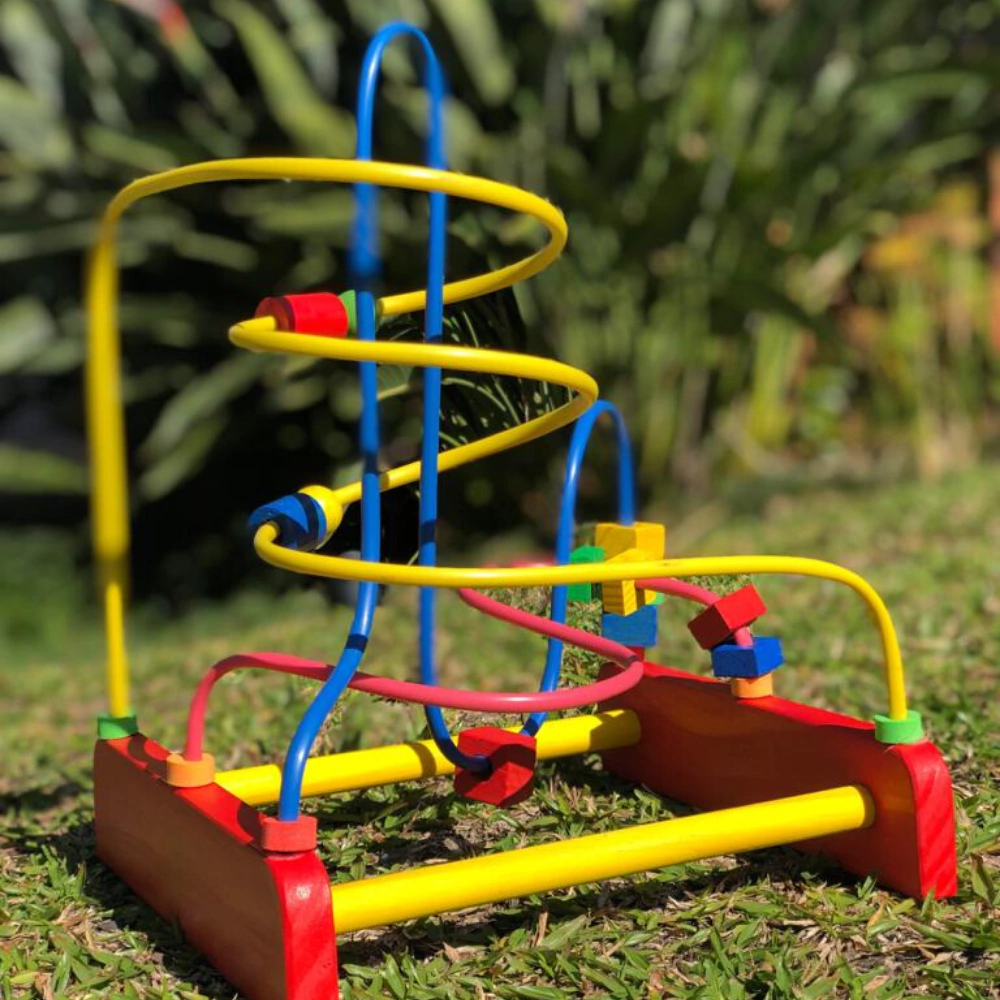 Um brinquedo ideal para primeira infância, a partir de 8 meses, todo em madeira com as estruturas curvas em arame reforçado revestido com plástico e pintura atóxica. Trabalha coordenação motora fina, espacial e um excelente brinquedo visual. Muito utilizado em consultórios pediátricos e de psicólogos. Medida 27x22,5x37cm.