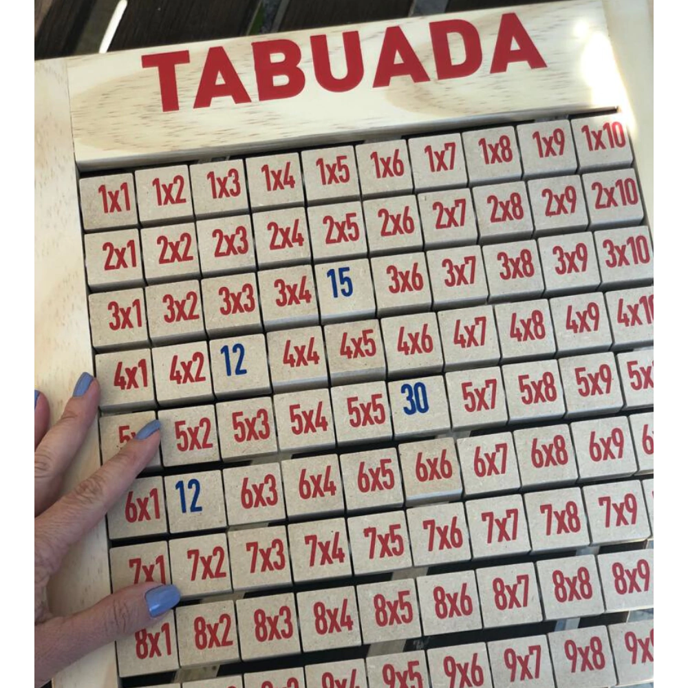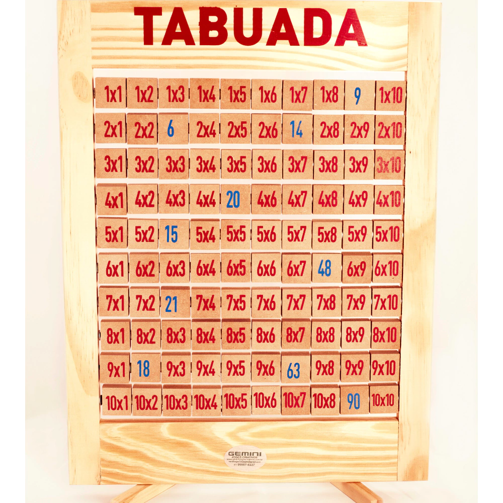 Auxilia as crianças no estudo da tabuada. Possui pés, ideal para ficar na escrivaninha, pois trabalha a memória visual. Tabuada do 1 ao 10, com a resposta giratória, facilita visualizar o resultado